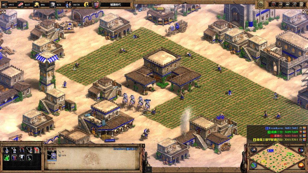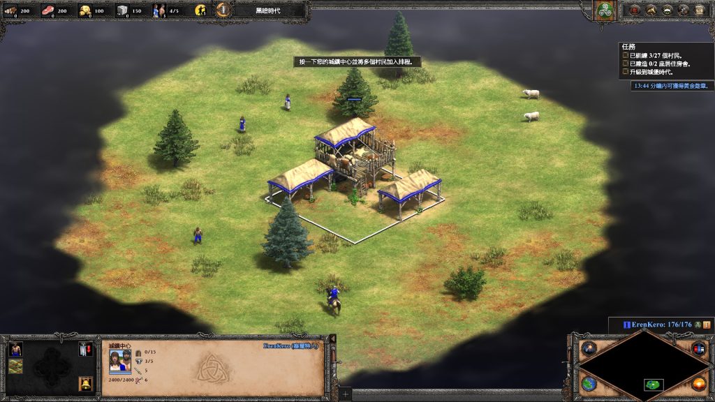 常規的遊戲設定下,每位玩家文明一開始處於黑暗時代,代表能發展的建築、單位及科技都是有限的,所以當村民採集足夠資源(木材、食物、黃金、石頭)後,就能依玩家需求發展科技,讓文明依序升級至封建、城堡及帝王等時代
