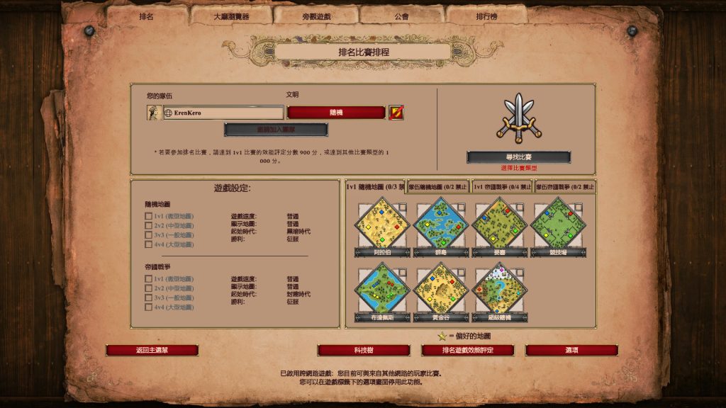 玩家實力足夠後,可以參加排名比賽,比賽類型有微型地圖的1對1單挑,或是2對2以上的團隊競爭,在排行榜的頁面可以檢視自己和其他玩家的排名等級、勝利次數及勝率