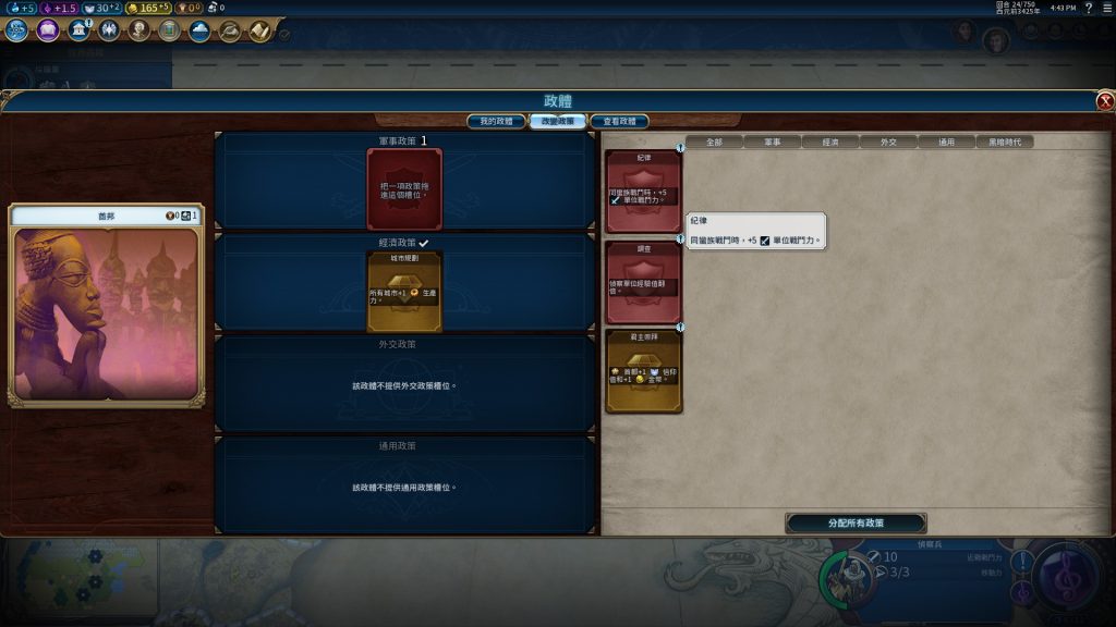 搭配軍事政策卡「紀律」可以減輕和蠻族戰鬥的壓力