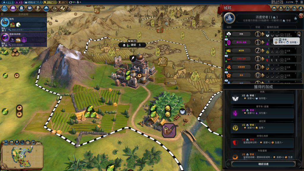 派遣使者至不同種類城邦能獲對應加成,若使者夠多,還能成為宗主國取得好處